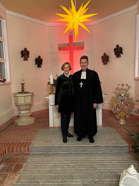 Wir Haskas haben es sehr genossen, mit Frau Steinberg Zeit zu verbringen. Sie hat Sie alle sehr würdig vertreten. Und endlich konnte ich sie fragen, wie es eigentlich früher in Herzberg war. Auf Ihr Erzählen aus Banzendorf, Dierberg, Keller und allen anderen Orten unserer Kirchengemeinde musste ich leider verzichten. Aber viel-leicht klappt das ja dann am 1. Januar 2026?