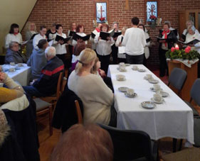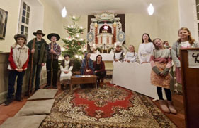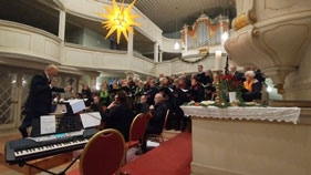 Adventsfeier in Hindenberg mit Andacht und dem Rheinsberger Frauenchor. Ebenso Musik von der Nyckelharpa, der Schlüsselfidel und Akkordeon und Trommel.